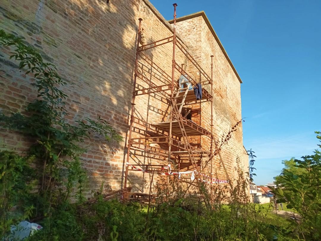 Obnova fortne v opevnení predstavuje dôležitý krok v zachovaní čo najvernejšej podoby pôvodných hradieb. Prvá etapa rekonštrukcie začala už v roku 2021, kedy sme odstránili poškodené omietky a cementové vrstvy. Po eliminovaní porušených častí múrov sa museli poriadne presušiť. Tento rok sme sa pustili do opravy drobných porúch v omietke, obnovu omietkových vrstiev a následne zjednotenie povrchu fortne nalíčením vápenným náterom.