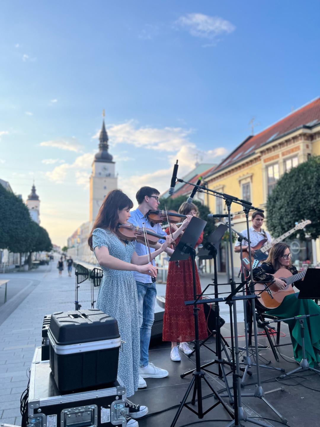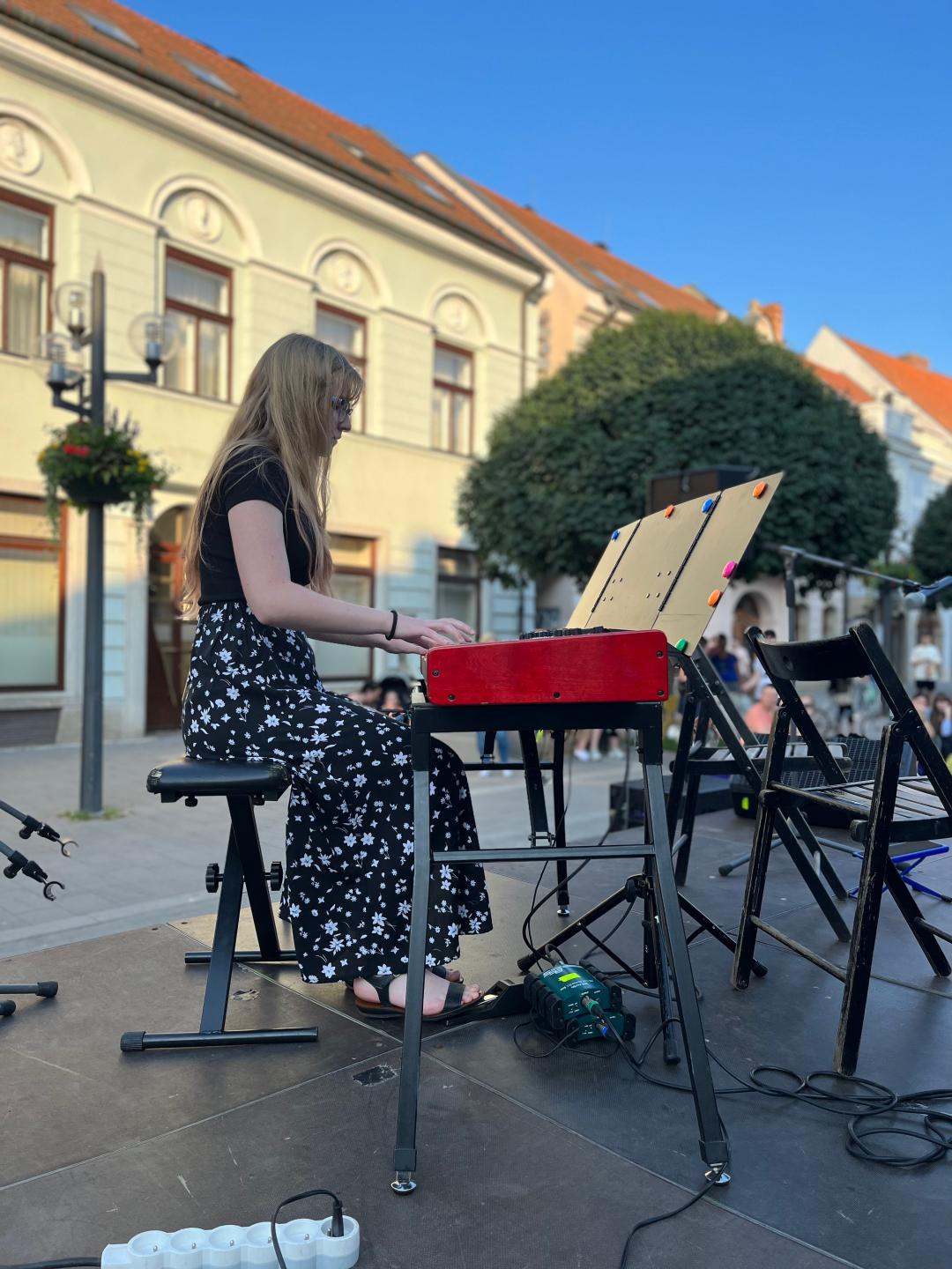 Starší žiaci si na ZUŠ M. Schneidera-Trnavského môžu vyskúšať aj hudobné improvizácie. Záber je z aboslventského koncertu na korze. Foto: Marián Cipár