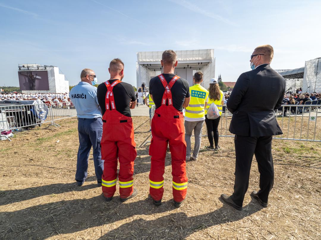 Definovali sme si tri varianty. Všetci sme dúfali, a teda niektorí sa aj modlili za ten prvý, komfortný variant - že podmienky počasia alebo poveternostné podmienky budú také, že je to pre všetkých ľudí príjemné. Variant číslo dva, s ktorým sme rátali, ale dúfali sme, že nenastane, bol, že počasie bude pre ľudí nepríjemné, ale nie nebezpečené - to znamená, že návštevníci prichádzajú v daždi, vo vetre do nejakej hranice, sú zablatení atď. Jeden z mojich katastrofických snov, ktorý ma sprevádzal počas príprav, bol, že sme spolu so svätým otcom tlačili papamobil z blata ☺. Tretí variant bol pre prípad extrému, kedy nie je bezpečné púšťať ľudí dovnútra areálu.