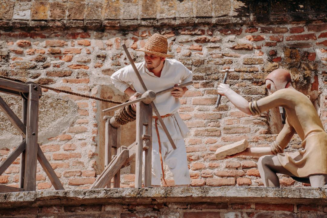 Socha s menom Krutohlav, ktorý stále krúti hlavou, deti privíta na jednom zo stanovísk.