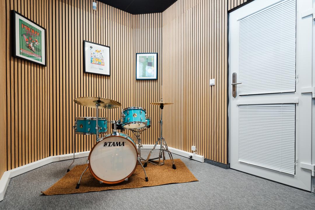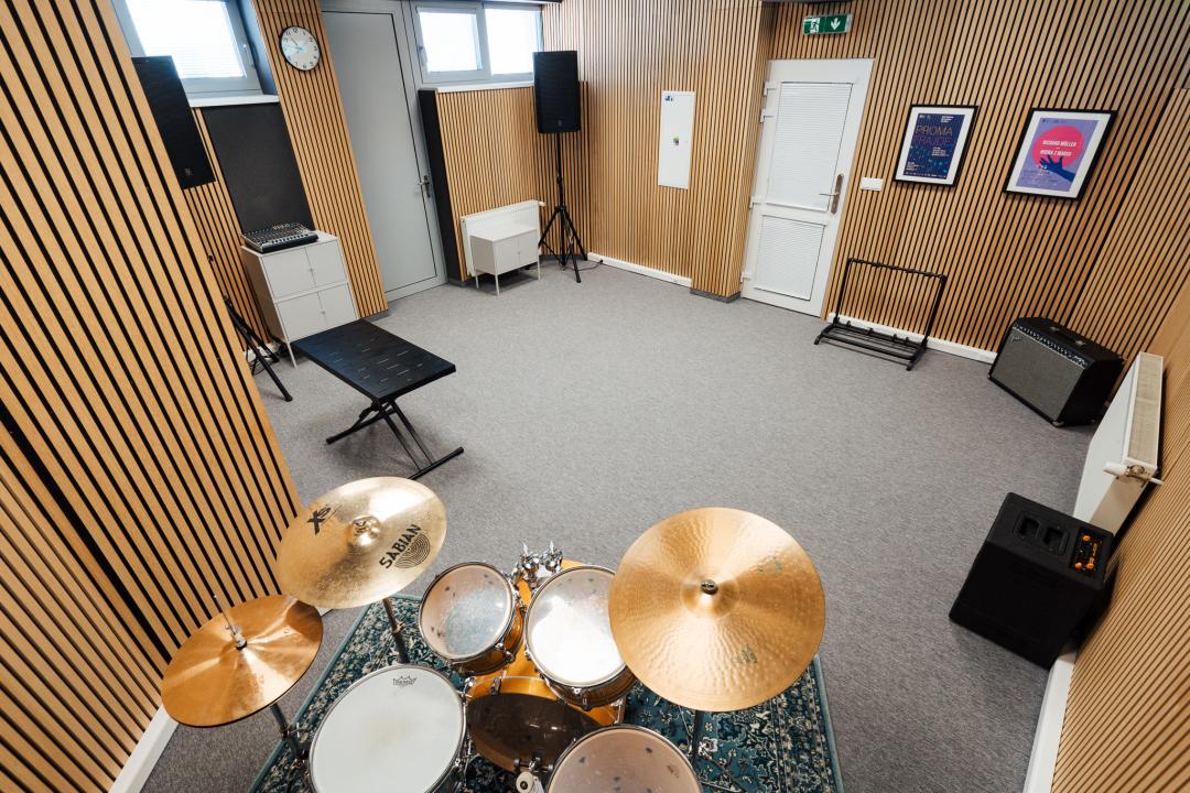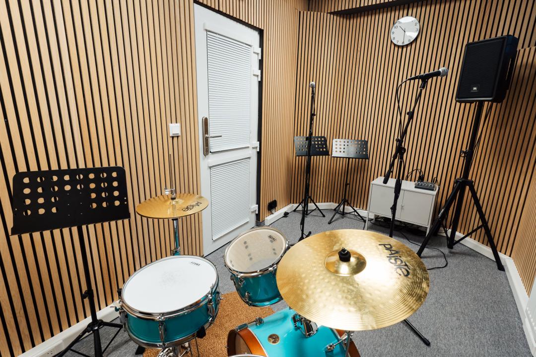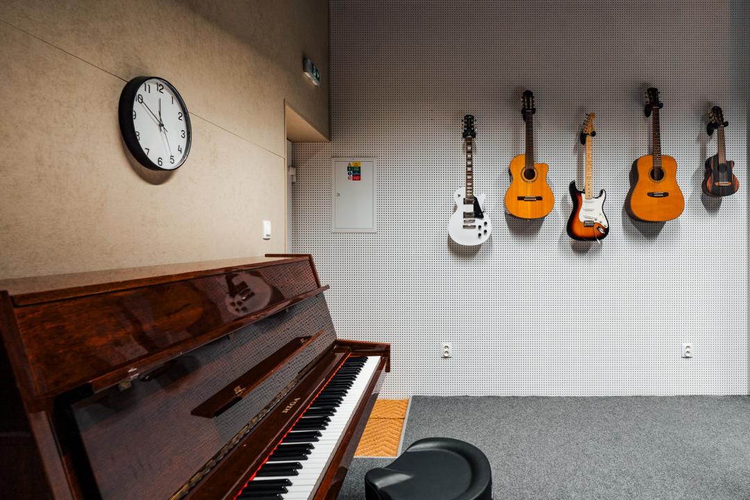 Najvyťaženejšia miestnosť je malá skúšobňa, vhodná je pre jednotlivcov, dvojice, maximálne triá. Chodia sem hlavne bubeníci, ktorí tak nemusia cvičiť na bicích u seba doma.